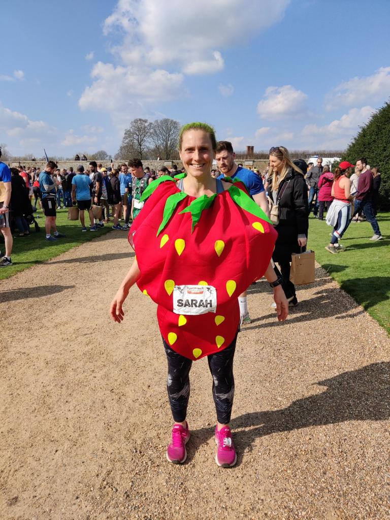 I’m going to be wearing the strawberry again, the Shinfield 10k – hopefully with a flash mob of other fruits and vegetables. We’re doing it for Share Wokingham, raising funds and awareness for that. I didn’t get into London, so luckily I won’t have to wear this for that.
