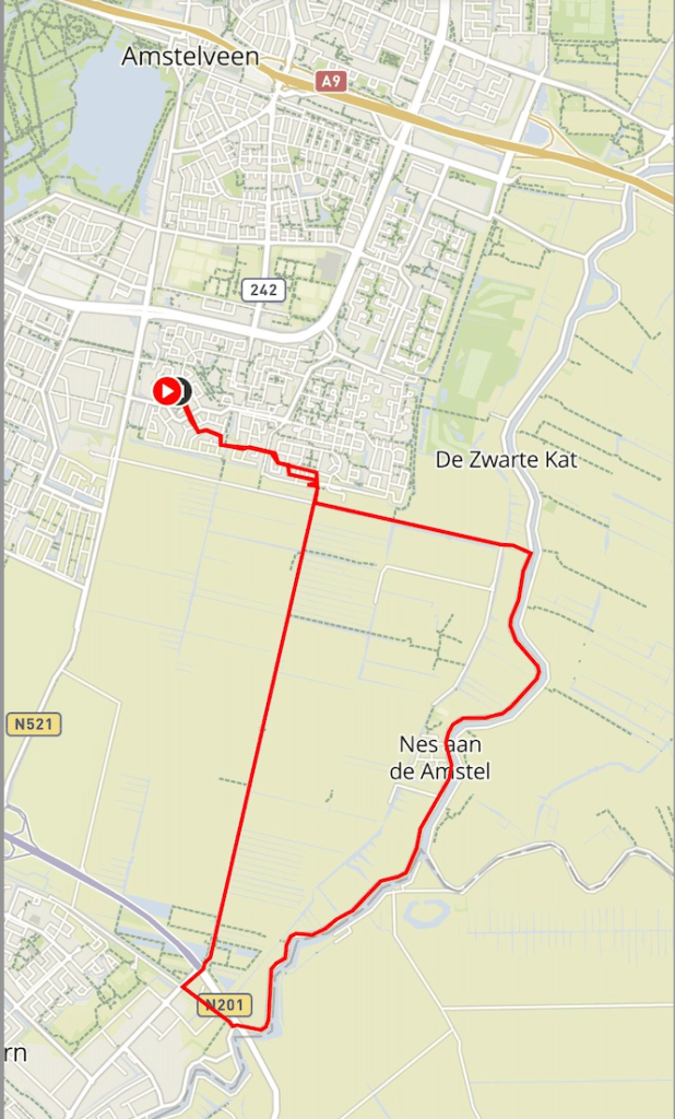 So the example of this weekend was great – 2 runs, one Saturday and one on Sunday. The above map was from my run on Sunday. I wanted to experience running along canals, what the life was like alongside them and who else used them. The route I plotted looked like it would give me that variety, taking me down a wide and larger canal, then back up a canal that appeared to run through the middle of green open space (what this was I wouldn’t know until I ran). The picture under the map was from an early part of the run that stretched away for over 1km. A really well paved straight road, with a small space for a car in down the middle, with cycle paths left and right. When I reached the large canal I got to see the variety of runners & cyclists out for morning exercise. A mixture of club riders and some pretty fast guys on time trial set up bikes, heads down and powering away. The roads are wonderfully kept, which makes running on the cycle paths enticing and enjoyable. I ran through a well kept, wealthier area that had a tug & cable affair to help people cross the canal. Which to me seemed stereotypically Dutch.