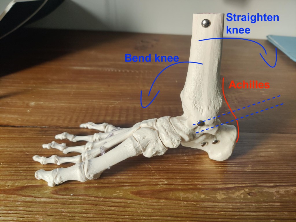 I bought this great model of a foot recently – it’s a lot of fun to play around with and get a better feel / understanding of how the bones in the feet move and the knock on impact this has on the muscles / tendons that are attached. One of the areas I’ve been looking at more closely (as it’s something that I’ve historically had a problem with, thankfully not at the moment) is the relationship with how the foot moves and how this impacts on the achilles.