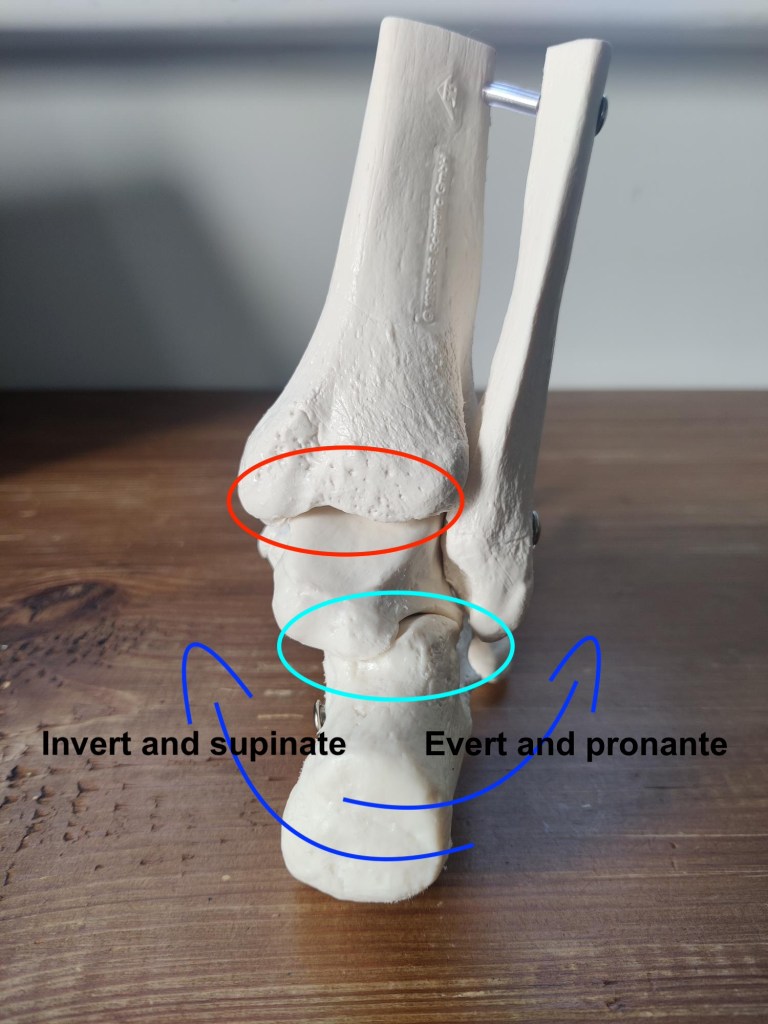 One of the compensatory patterns that can happen (and this something I was really prone to) is the foot cannot pronate. So when you land and load the ankle just dives into the inside of the foot, rather than the heel rolling forwards and also everting – or in the direction below: