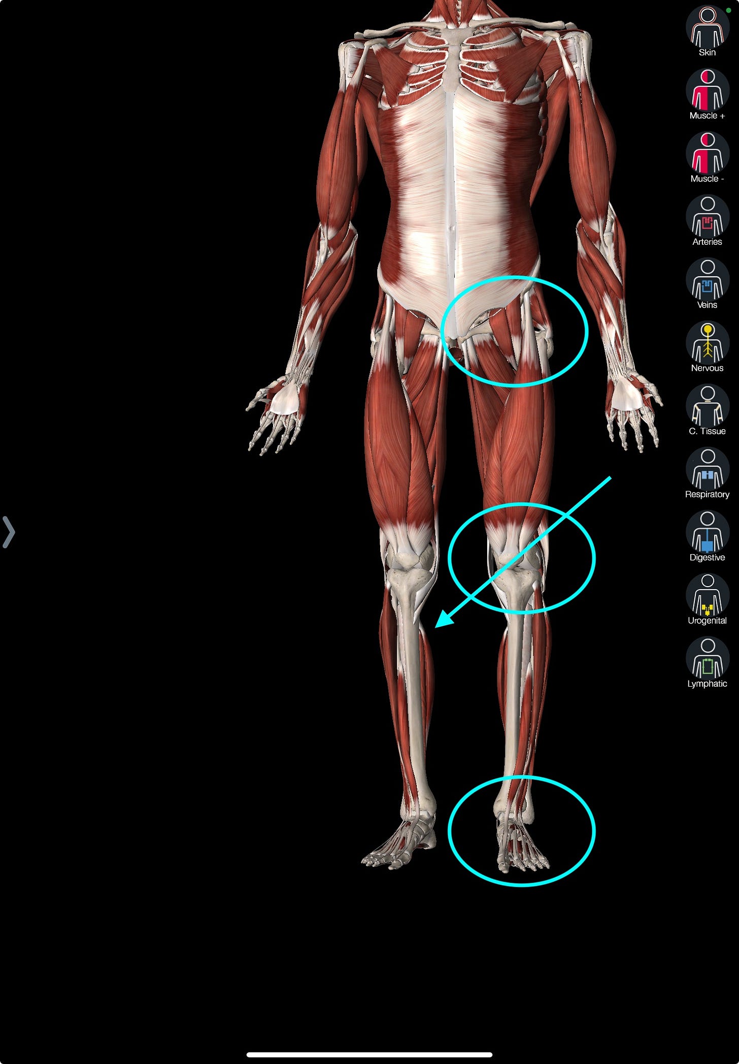 I begun to notice an ache in my right knee cap, which got progressively worse after every run, until a break was in order. I was curious as to what this could be so went about investigating. One of the challenges is not being able to see what is under the skin, relying on nervous system feedback (or pain) to guide as to what has happened. So part of this is best guess, but this is the process I went through to begin to piece together what could have been happening and why.