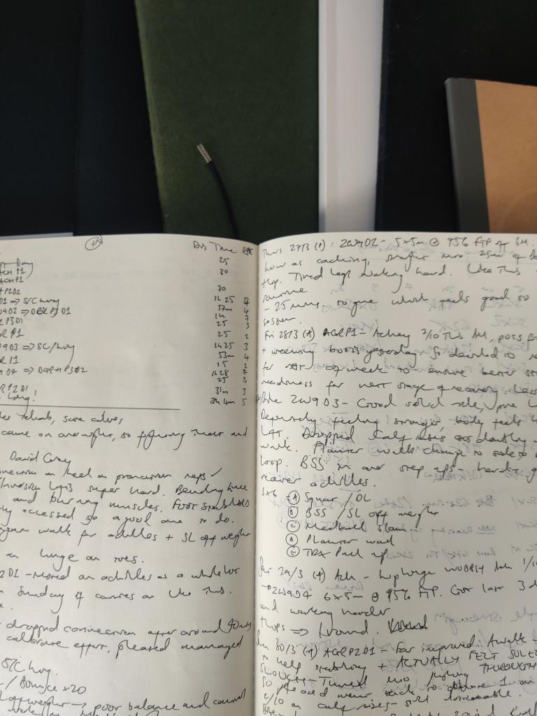 What I found helps is physically getting my thoughts down, as opposed to typing insights into Suunto’s Movescount or Strava. For me, there is still something a lot more powerful & effective in the act of putting pen to paper and recording my thoughts. This may not always be the case for younger generations – or those to come – who may never get the chance to write in school as recording is done verbally or via typing electronically. But for me that isn’t the case.
